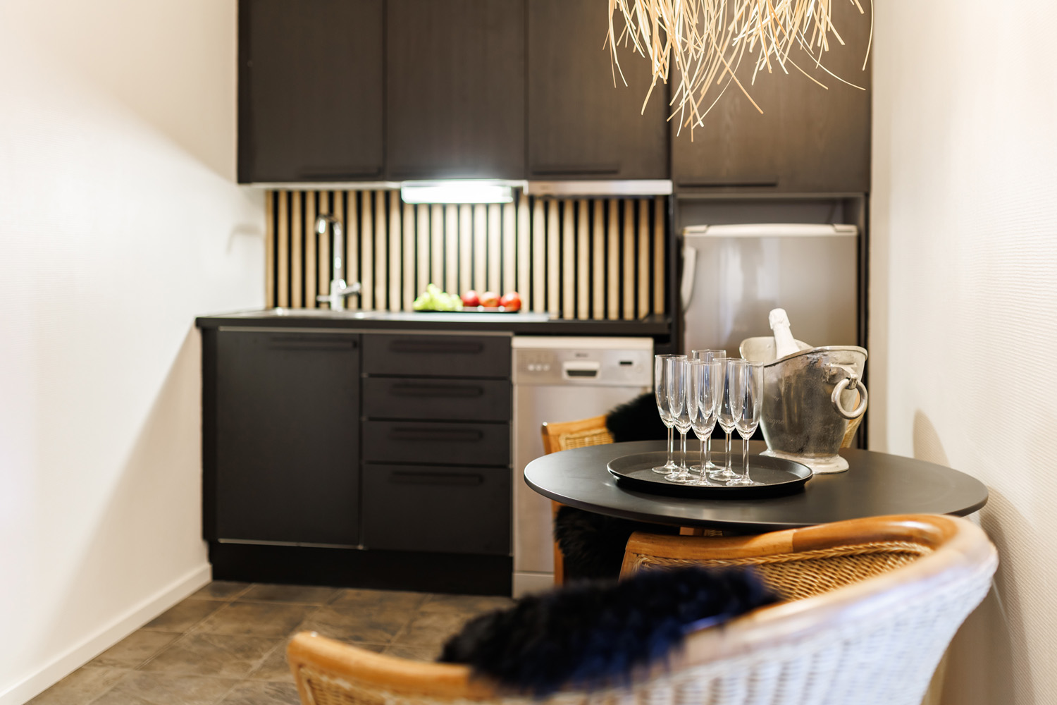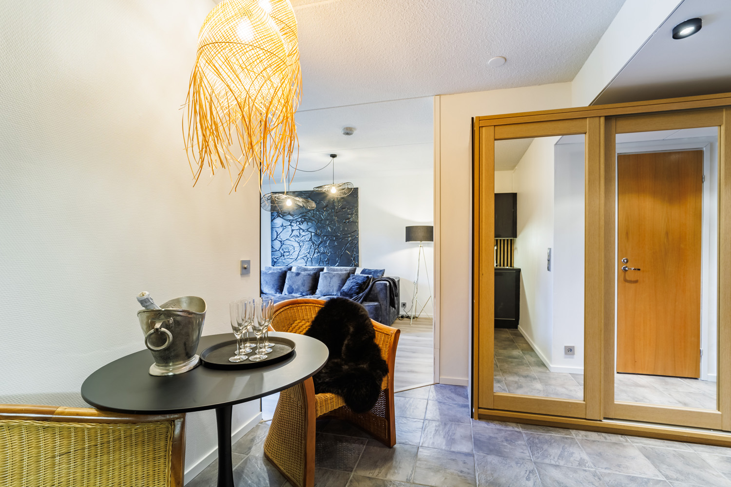 Huoneistoissa on käytetty laadukkaita materiaaleja, kuten aitoa puuta ja kukin huoneisto on sisustettu yksilöllisesti hyvää makua käyttäen. Seiniä koristavat yksilölliset maalaukset.