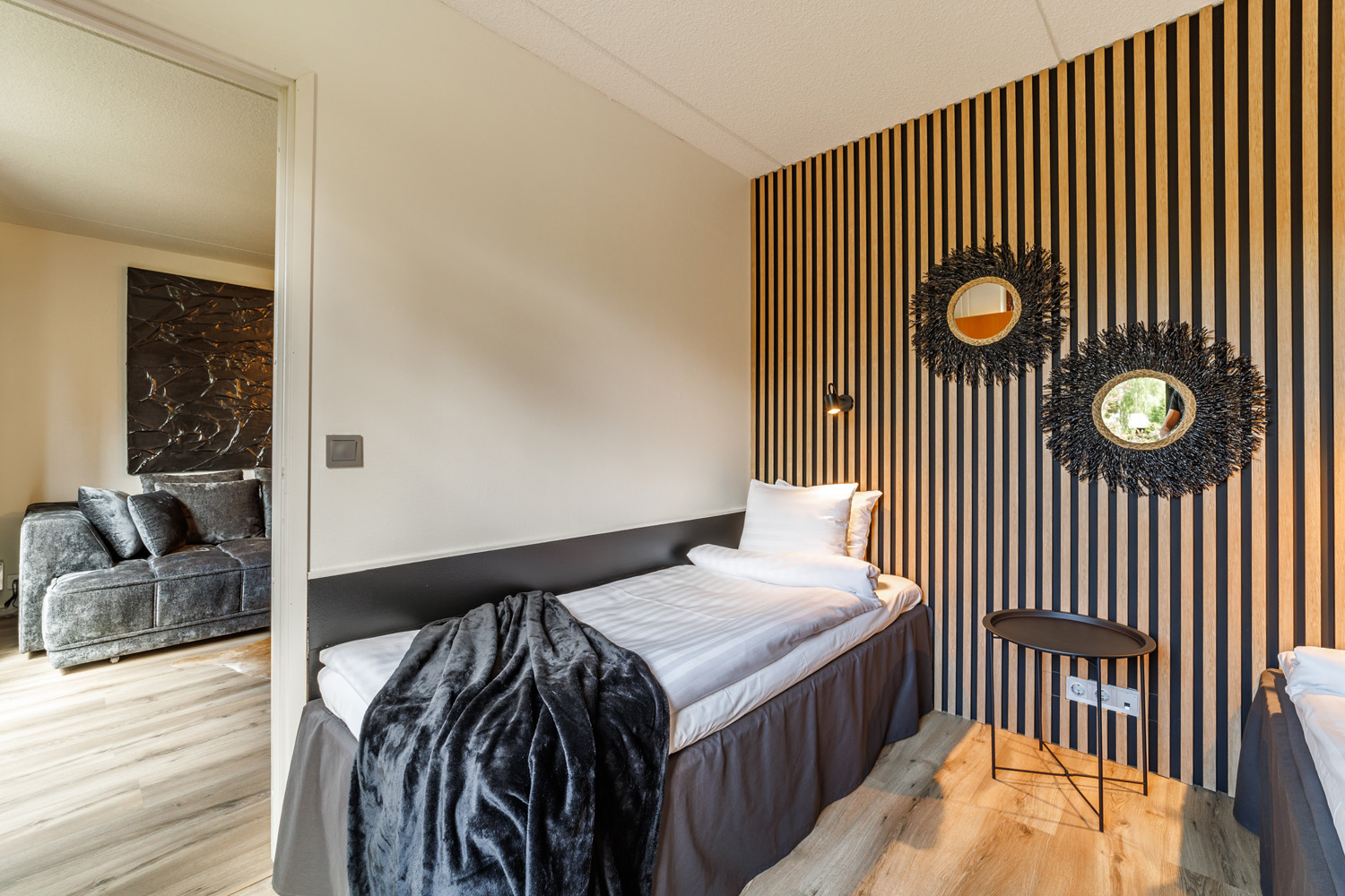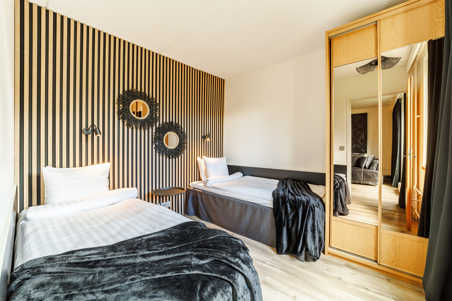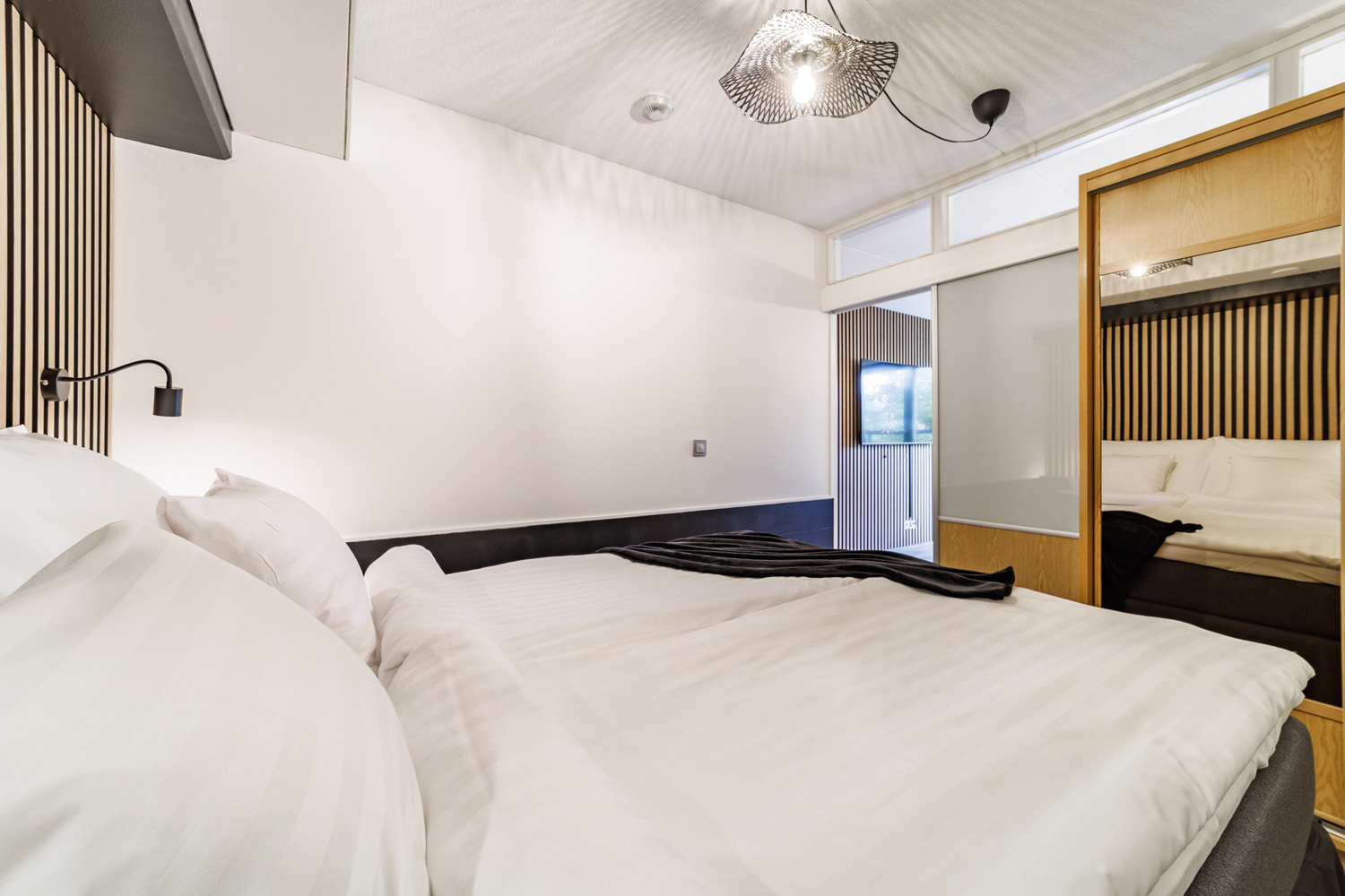 2 makuuhuonetta, toisessa ylellinen parivuode, toisessa erillisvuoteet.
