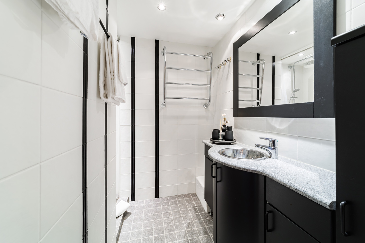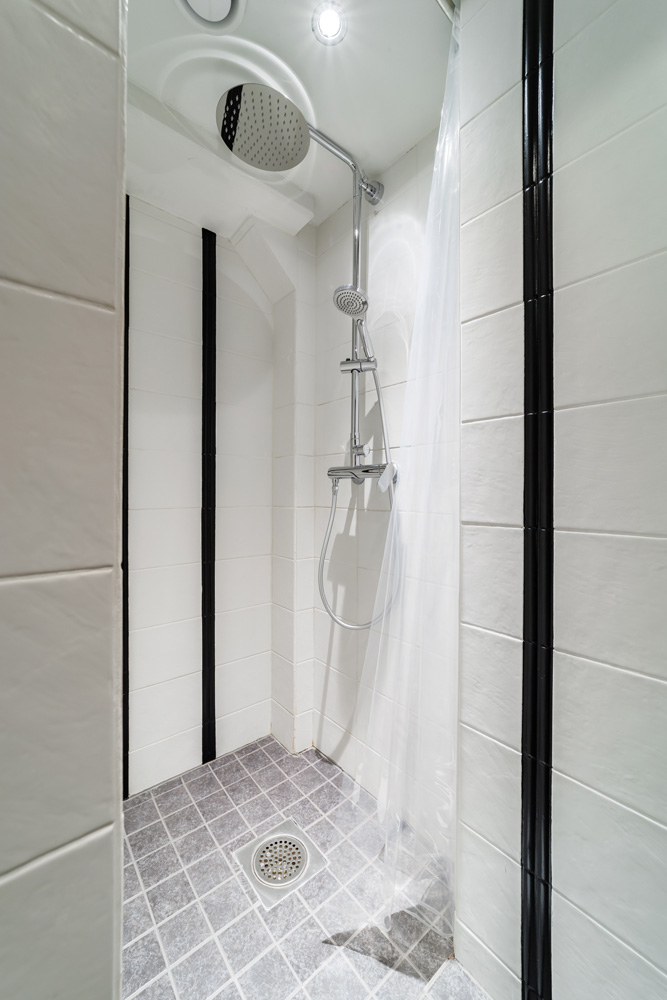 Erillinen wc ja tilava kylpyhuone, jossa ylellinen sadesuihku, liinavaatteet kahdelle, hiustenkuivaaja, silitysrauta ja -lauta, iso tv runsailla liitännöillä, ranskalainen parveke. Pysäköintipaikalla on lämmityspistoke, sähköauton lataaminen ei ole mahdollista.