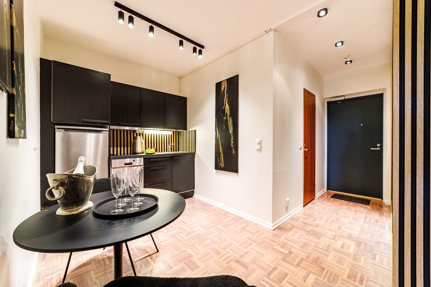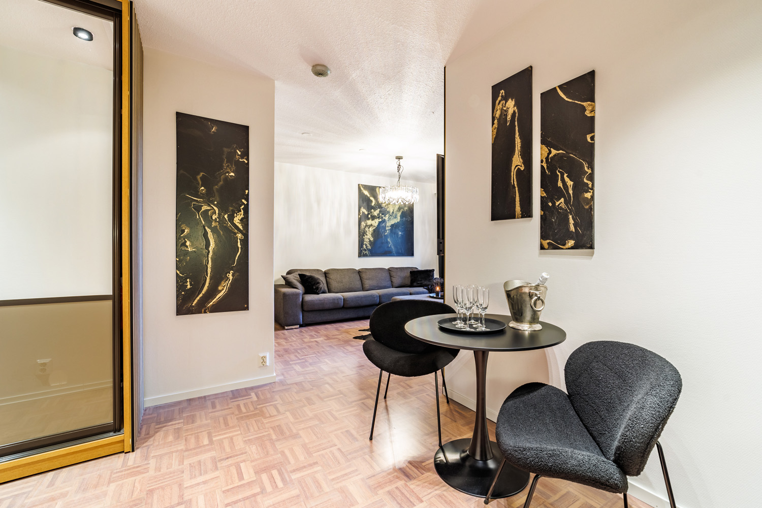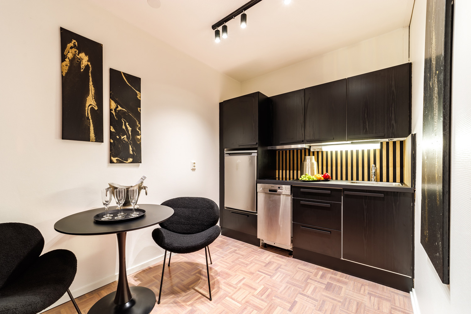 Huoneistoissa on käytetty laadukkaita materiaaleja, kuten aitoa puuta ja kukin huoneisto on sisustettu yksilöllisesti hyvää makua käyttäen. Seiniä koristavat yksilölliset maalaukset.