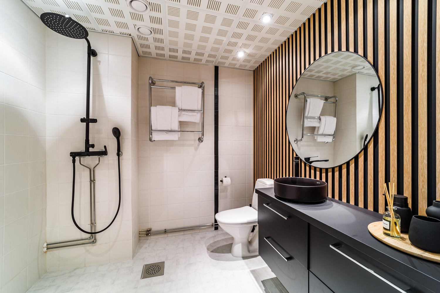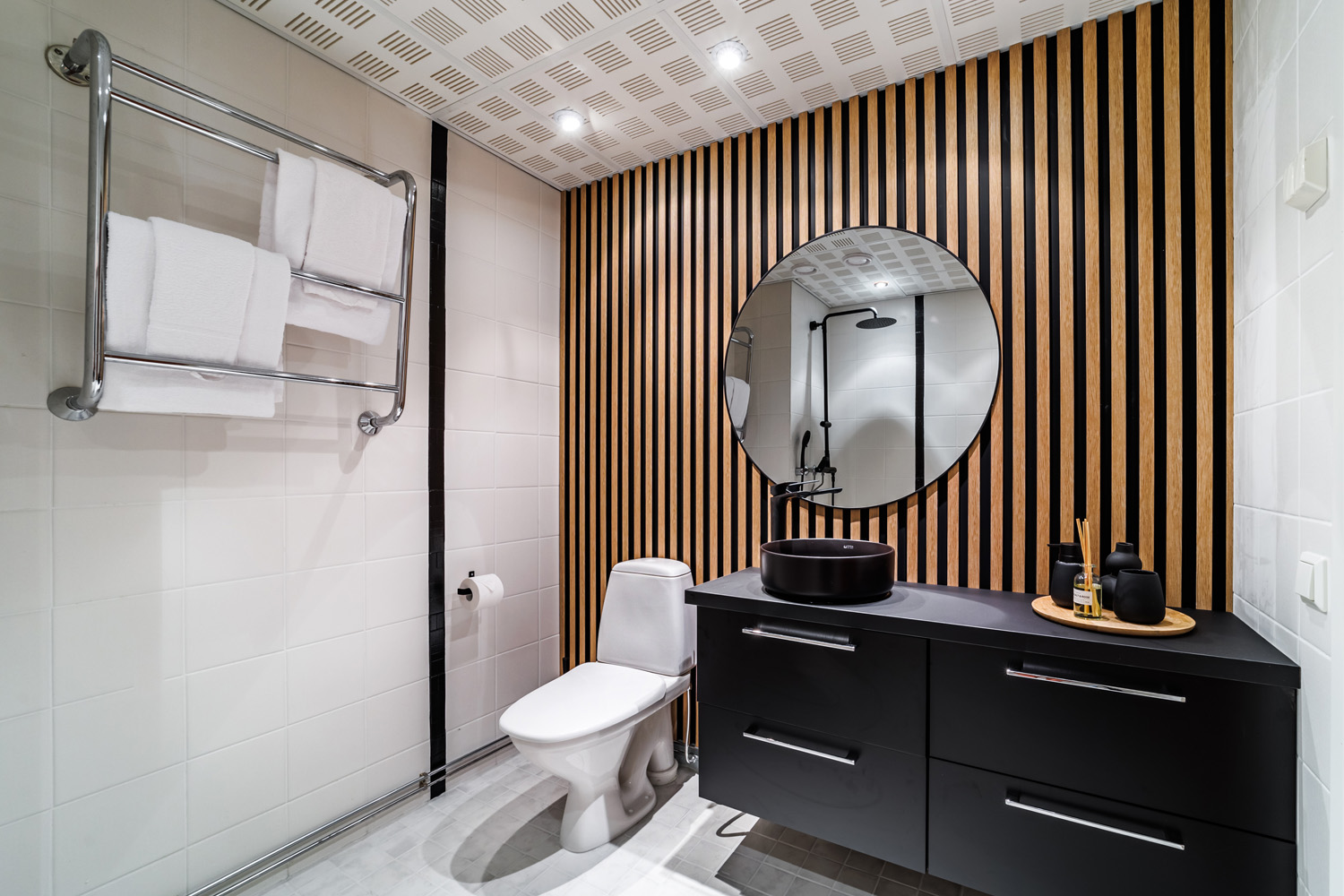 Tilava kylpyhuone-wc, jossa ylellinen sadesuihku, liinavaatteet kahdelle, hiustenkuivaaja, silitysrauta ja -lauta, iso tv runsailla liitännöillä, ranskalainen parveke. Pysäköintipaikalla on lämmityspistoke, sähköauton lataaminen ei ole mahdollista.