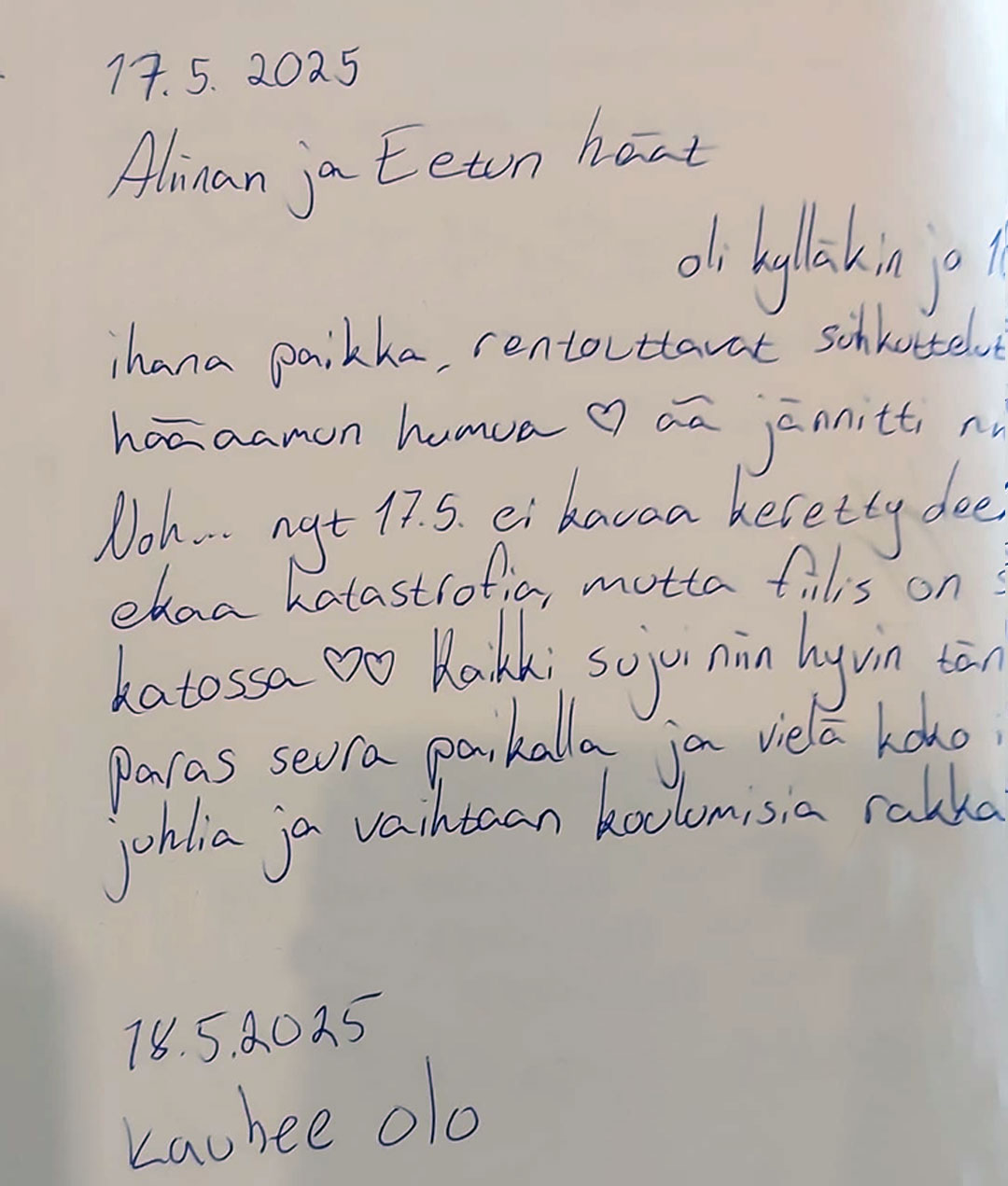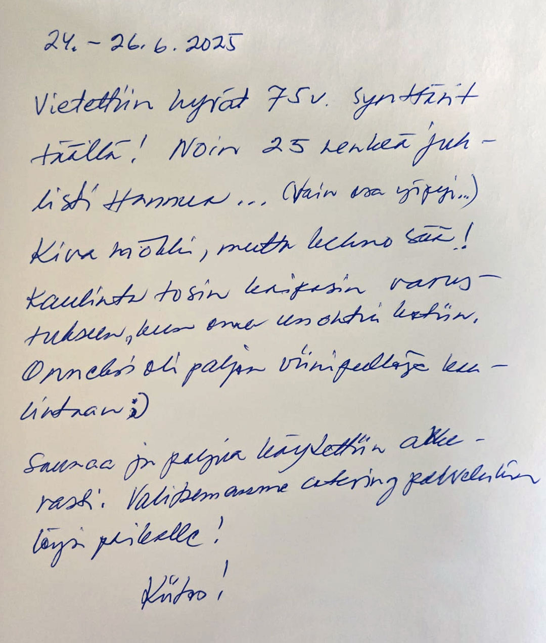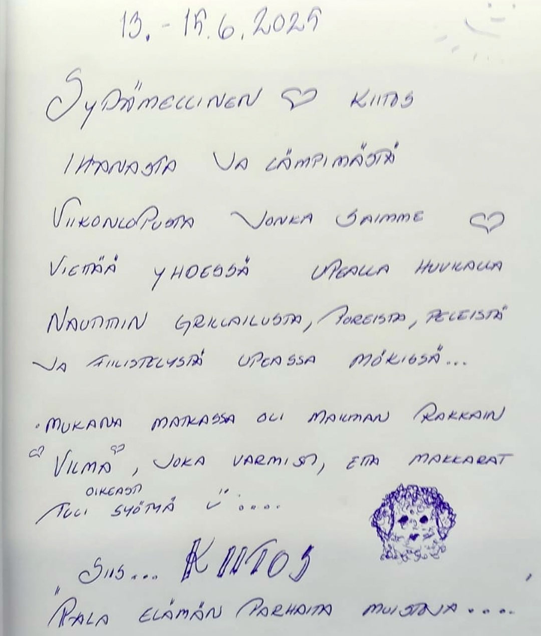 Vieraamme ovat ilahduttaneet meitä mitä lämmittävimmillä terveisillä. Vieraskirja löytyy jokaisesta huoneistostamme. Kuvagalleriasta pääset kurkkaamaan, miten vieraamme ovat meillä viihtyneet.